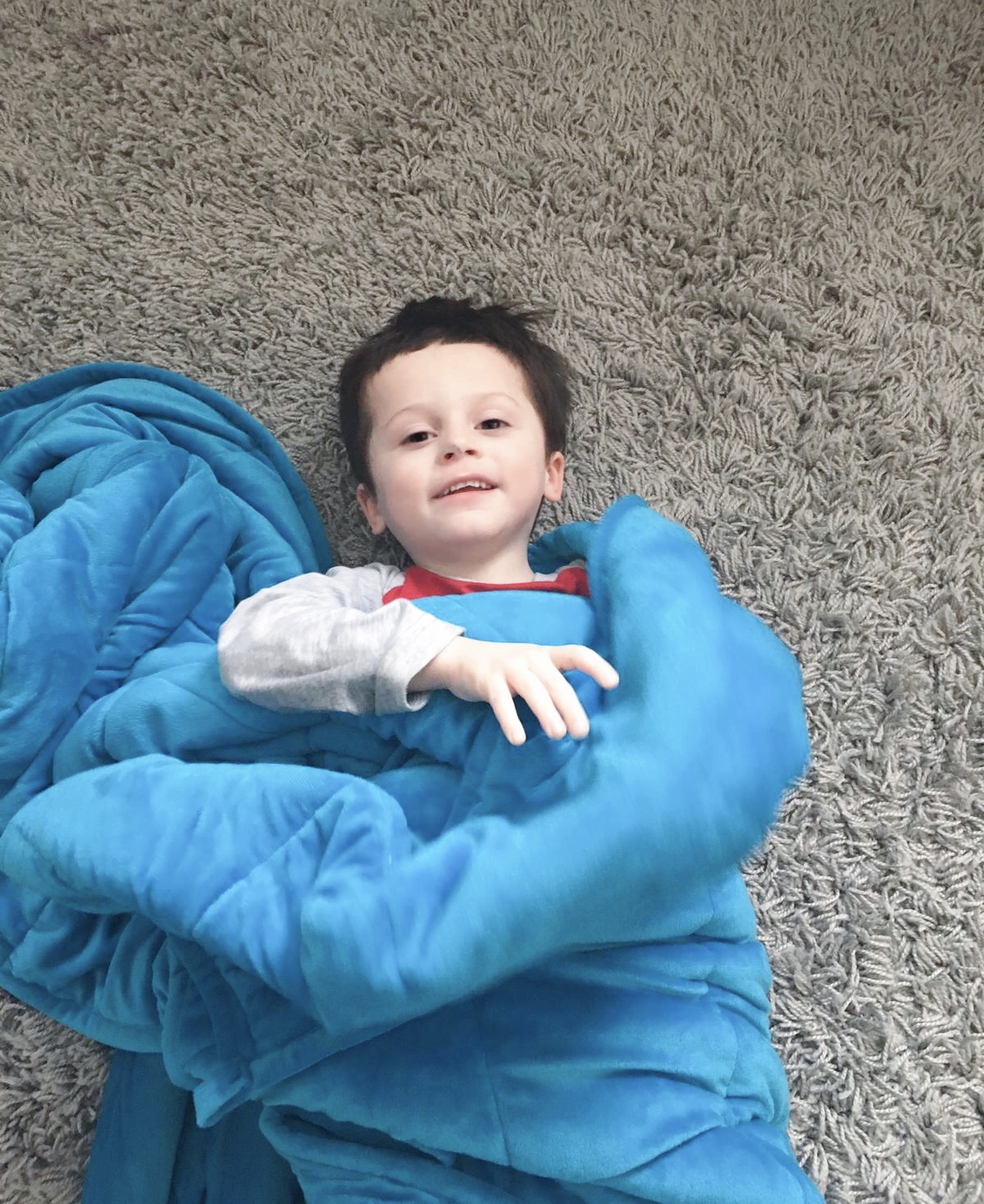 The added weight of the blankets can be great for sensory input too. By applying firm but gentle pressure, a weighted blanket delivers all of the benefits of a hug without forcing unwelcome contact. This sensation releases serotonin which helps to regulate sleep and mood. Sleep!!